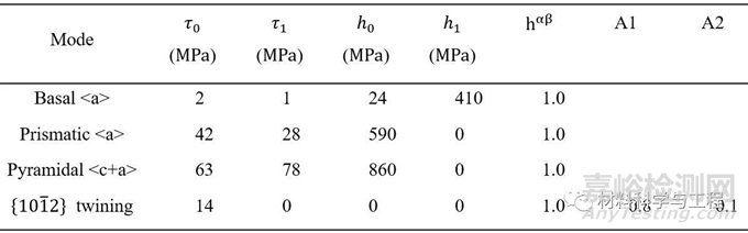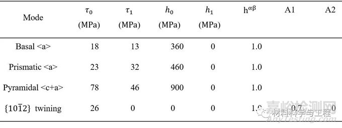 表3.通過(guò)CPFEM獲得的Mg-4.5 wt. % Li硬化參數(shù)