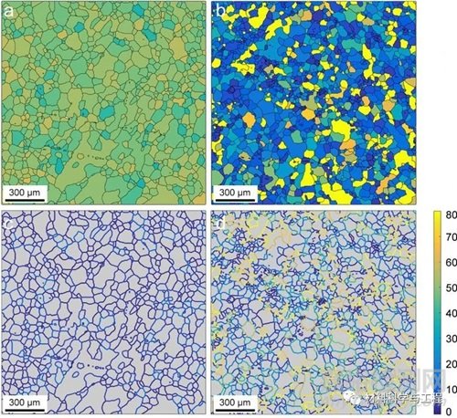 圖2 (a, c)純Mg與(b, c)Mg-4.5Li中的啟動(dòng)應(yīng)力及相鄰晶粒啟動(dòng)應(yīng)力差分布。