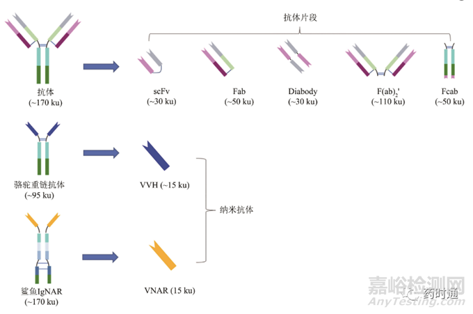 圖2 用于ADC藥物的抗體片段和納米抗體結構示意圖