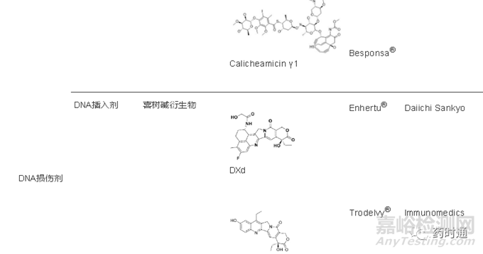 DNA損傷劑因作用機制不同而分為3大類:DNA雙鏈破壞劑、DNA插入劑和DNA烷基化劑。DNA在細胞的生長和增殖過程中至為關鍵,對其進行破壞,能夠高效殺傷腫瘤細胞并抑制其快速增殖。值得注意的是,部分DNA損傷劑,如PBD dimer和Duocarmycins,在動物中高劑量給藥時,可能產生延遲毒性,因此在給藥周期設計時,應謹慎考慮。