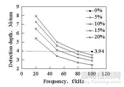 圖6 304不銹鋼不同形變下渦流檢測探測深度
