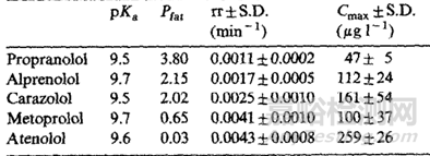 表2 不同β受體阻斷劑理化性質(zhì)及Cmax表[6]