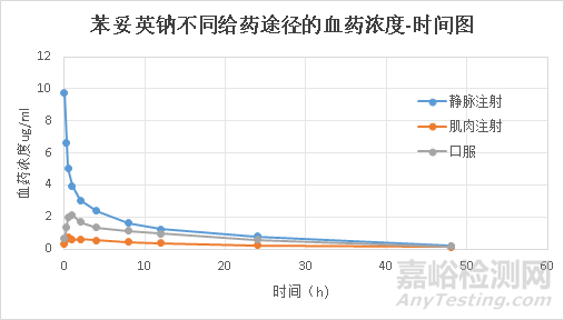 圖6 苯妥英鈉不同給藥途徑的血藥濃度-時(shí)間圖[14]