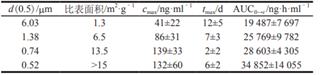 表1 帕利哌酮的顆粒大小及其肌注后在beagle犬體內(nèi)相應(yīng)的藥動(dòng)學(xué)參數(shù)[3]