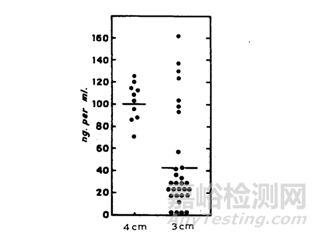 注射不同的深度,其機(jī)體環(huán)境也有一定的差異,比如皮下注射脂肪結(jié)締組織和脂肪細(xì)胞較為豐富,而脂肪組織和肌肉組織的親脂性也是有一定差異,通常情況,脂肪組織比肌肉組織的親脂性更強(qiáng),血流量也更少。據(jù)Dundee[19]等人研究,將地西泮注射液進(jìn)行肌肉注射,注射深度分別為3cm和4cm,結(jié)果(結(jié)果見下圖8)顯示,注射3cm的血藥濃度小于注射4cm,研究人員解釋,3cm的脂肪層多于4cm,因此地西泮在3cm吸收更慢。