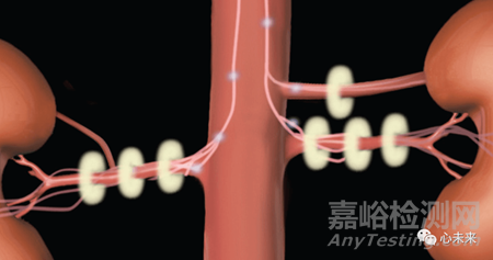 在該手術(shù)中,患者在麻醉狀態(tài)下通過(guò)在腹股溝上切一個(gè)小切口。通過(guò)股動(dòng)脈穿刺,插入一個(gè)小的柔性導(dǎo)管,然后將其放置在供應(yīng)腎臟的動(dòng)脈中,在手術(shù)中左右兩個(gè)腎臟動(dòng)脈都需要接受消融。Paradise超聲波去神經(jīng)系統(tǒng)傳遞超聲波能量(聲波)到動(dòng)脈周?chē)慕M織,持續(xù)數(shù)秒鐘,能量產(chǎn)生熱量針對(duì)交感神經(jīng)進(jìn)行消融,切斷交感神經(jīng),從而實(shí)現(xiàn)去交感神經(jīng)治療。該系統(tǒng)環(huán)形消融,確保無(wú)遺漏消融,且操作簡(jiǎn)便,縮短手術(shù)時(shí)間。Paradise超聲波去神經(jīng)系統(tǒng)也獲得了FDA頒發(fā)的“突破性設(shè)備”稱(chēng)號(hào)。