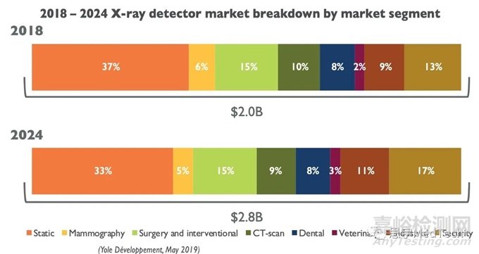 ▲圖:CT探測器約占X射線類探測器10%左右的市場份額