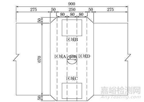 針對(duì)該0號(hào)塊的特點(diǎn),采取分區(qū)檢測(cè)的測(cè)區(qū)布置方式對(duì)其曲面進(jìn)行彈性波CT檢測(cè),測(cè)區(qū)布置如圖3所示。