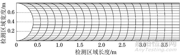 圖3 曲面彈性波CT檢測(cè)測(cè)區(qū)布置示意