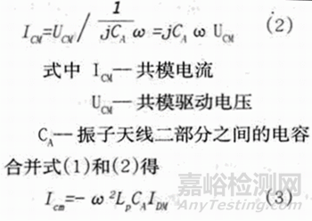 這里UCM就是產(chǎn)生共模輻射的驅(qū)動(dòng)源。要產(chǎn)生輻射,除了源以外還必須有天線。這里的天線有兩部分組成,一部分是由A點(diǎn)向左看的地線部分,另一部分是由B點(diǎn)向右看的地線部分和外接電纜。其組成的輻射系統(tǒng)的等效電路如圖1(b)所示,這實(shí)際上是一付不對(duì)稱振子天線。流過(guò)天線的電流即為共模電流,可用下式表示