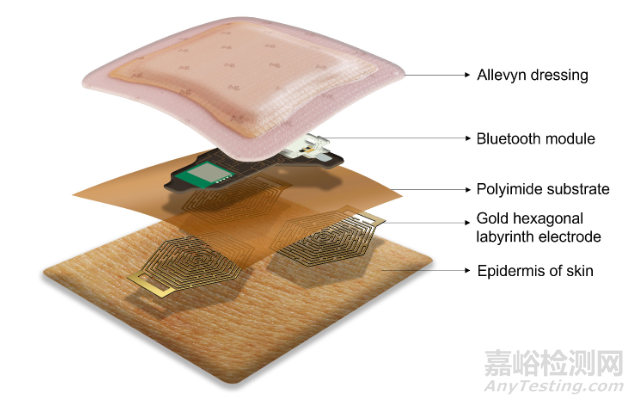 圖4. 演示基于六角迷宮設(shè)計(jì)的 3 導(dǎo)聯(lián)心電圖傳感器,具有無(wú)線通信功能。圖源來(lái)自論文。