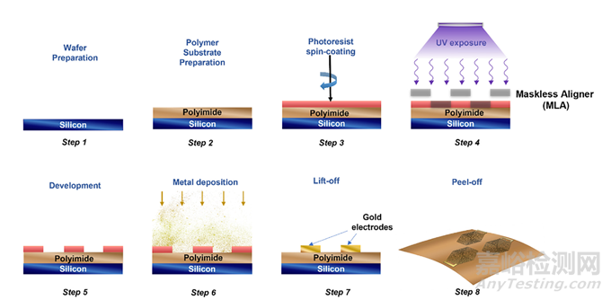 圖2. 電極制造中使用的分步光刻工藝。圖源來(lái)自論文。