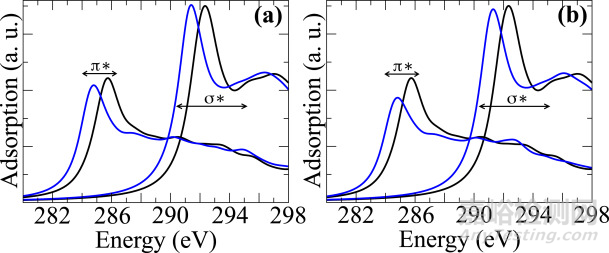 圖11. G/h-BN/SiC (a)和h-BN/G/SiC (b)的模擬C K邊XANES