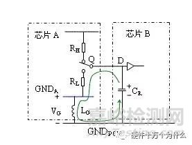 芯片A的輸出變化,產(chǎn)生地彈。這對芯片A的輸入邏輯是有影響的。接收邏輯把輸入電壓和芯片內(nèi)部的地電壓差分比較確定輸入,因此從接收邏輯來看就像輸入信號本身疊加了一個與地彈噪聲相同的噪聲。