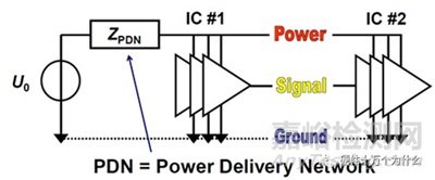 假設(shè)供電源是一個理想的電壓源,即Z=0,且假設(shè)傳輸途徑的阻抗也為0,那么負(fù)載不論怎么變化,變化速度有多快,電壓源都能夠反應(yīng)過來,并且確保A,B兩點電壓始終恒定。但實際上電源內(nèi)阻并不為零,而且傳輸線也不是理想的,而且這些影響因素是個復(fù)數(shù),與頻率相關(guān),所以就出現(xiàn)了電源的PDN阻抗。