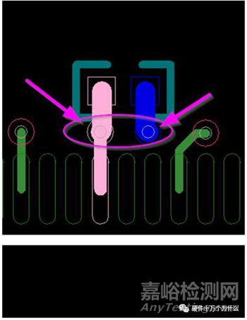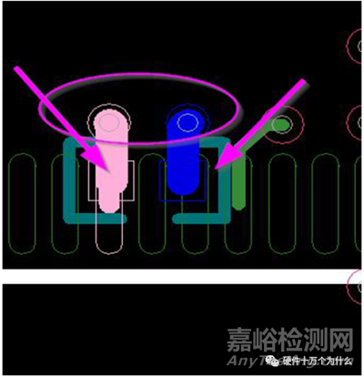 注意:小尺寸電容禁止在兩個焊盤間打孔,因為容易引起短 路。
