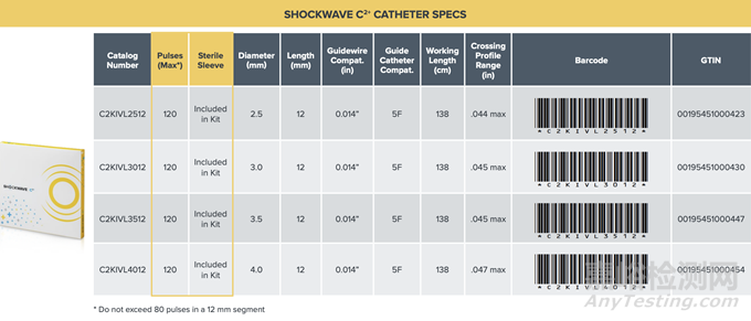 在產品型號規(guī)格上,Shockwave C2+適配0.014inch的導絲以及5F的導引導管,比上一代 Shockwave C2 具有更小的通過外徑;