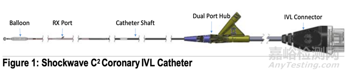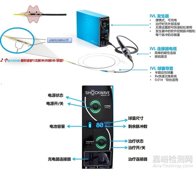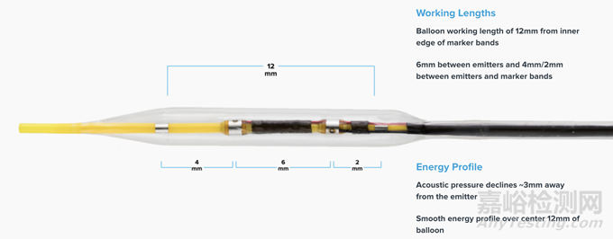 產品由球囊、導管軸、導管座、充盈端口、導絲出口、連接器和脈沖發(fā)射器組成。