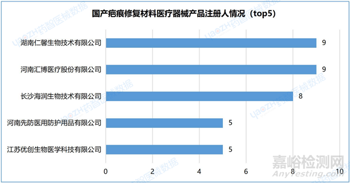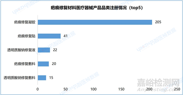 2.3疤痕修復(fù)材料醫(yī)療器械產(chǎn)品品類注冊情況(top5)