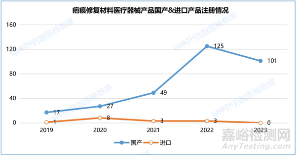 2.4疤痕修復(fù)材料醫(yī)療器械產(chǎn)品國產(chǎn)&進(jìn)口產(chǎn)品注冊情況