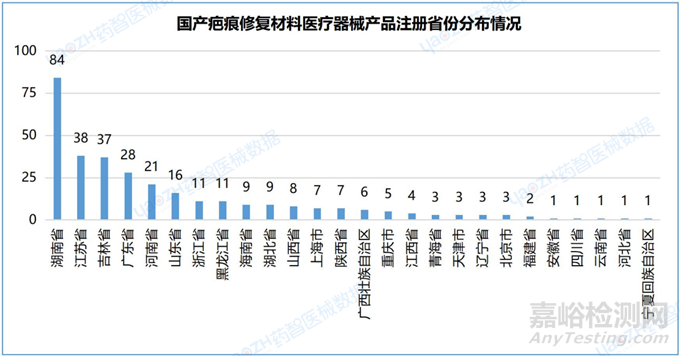 2.5國產(chǎn)疤痕修復(fù)材料醫(yī)療器械產(chǎn)品注冊省份分布情況