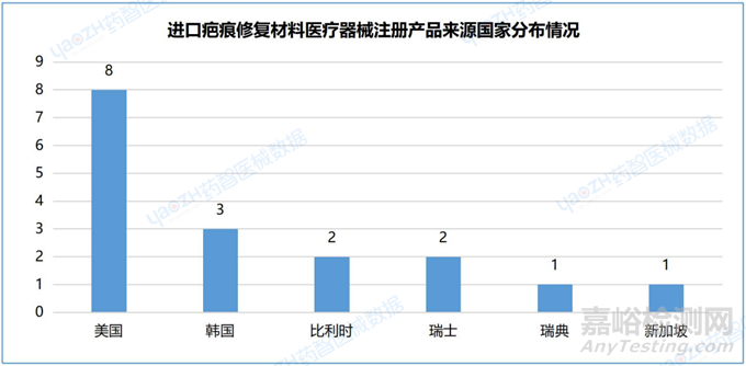 2.7進(jìn)口疤痕修復(fù)材料醫(yī)療器械注冊產(chǎn)品來源國家分布情況