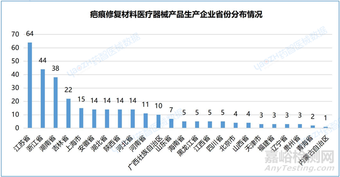 3.2疤痕修復(fù)材料醫(yī)療器械產(chǎn)品生產(chǎn)企業(yè)省份分布情況