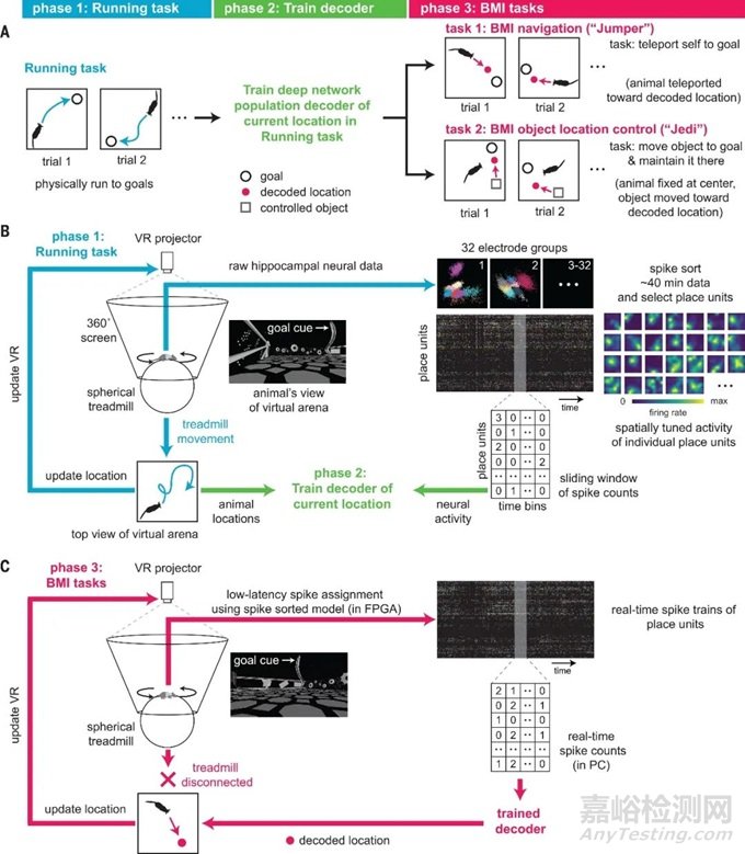 本文開(kāi)發(fā)了一種腦機(jī)接口BMI,發(fā)現(xiàn)僅通過(guò)激活和維持遠(yuǎn)程位置的適當(dāng)海馬體表征,老鼠就可以有效地導(dǎo)航或引導(dǎo)物體到虛擬現(xiàn)實(shí)競(jìng)技場(chǎng)內(nèi)的任意目標(biāo)位置。這提供了對(duì)情景記憶回憶、心理模擬和計(jì)劃以及想象力的潛在機(jī)制的深入了解,為研究這一重要的大腦區(qū)域提供了一種新穎的系統(tǒng),并為使用海馬表征的高級(jí)神經(jīng)修復(fù)術(shù)開(kāi)辟了可能性,由于 BMI 越來(lái)越多地應(yīng)用于假肢,這項(xiàng)新工作也為基于相同原理設(shè)計(jì)新型假肢裝置提供了可能性。