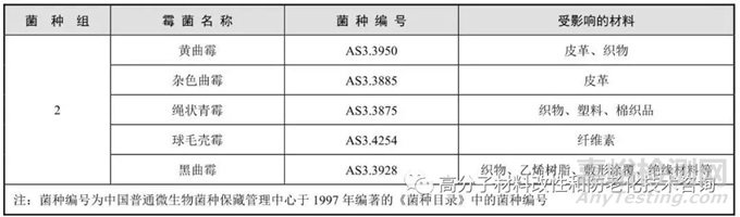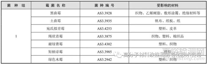 霉菌試驗(yàn)常選用的菌種和防霉等級(jí)分別列于表2和表3所示。試驗(yàn)時(shí)應(yīng)選擇其中一組,如需要還可以對(duì)菌種進(jìn)行調(diào)整。這些菌種是按照對(duì)其材料的降解能力、在地球上的分布狀況及其本身穩(wěn)定性來(lái)選定的。表2中所列菌種都相應(yīng)表明了侵蝕的材料種類,如有需要可在已選定其中一組菌種的基礎(chǔ)上額外增加菌種。· 試件在試驗(yàn)前無(wú)須滅菌,試件表面可能存在其他微生物。試驗(yàn)期間這些微生物會(huì)與試驗(yàn)菌種爭(zhēng)奪養(yǎng)分。因此,試驗(yàn)結(jié)束時(shí)試件上可能會(huì)有非試驗(yàn)用菌種的生長(zhǎng)。· 可在試驗(yàn)要求的菌種中加入其他霉菌菌種。增加的菌種應(yīng)按其對(duì)材料的降解情況來(lái)選擇。