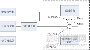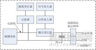 圖7電纜和電源線阻尼正弦瞬變傳導(dǎo)敏感度布置原理圖