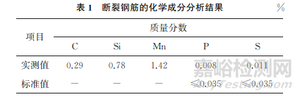 在斷口附近取樣,使用等離子體發(fā)射光譜儀和紅外碳硫分析儀對試樣進行化學(xué)成分分析,結(jié)果如表1所示。由表1可知:斷裂鋼筋化學(xué)成分符合GB/T 20065—2016《預(yù)應(yīng)力混凝土用螺紋鋼筋》的要求。