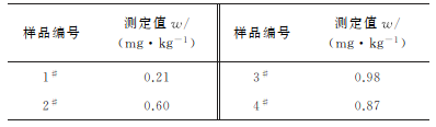 由表3可知,4個(gè)樣品中均檢出鉛,檢出量為0.21~0.98mg·kg-1。