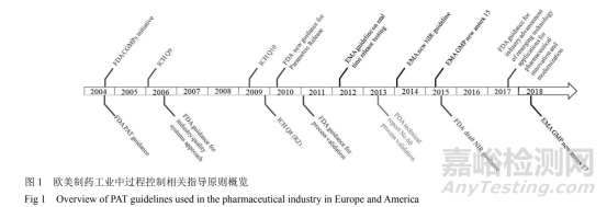 該技術(shù)不僅可以縮短工時(shí)、減少誤差,還可以使監(jiān)管更加有據(jù)可依,因此越來越多的歐美制藥企業(yè)開始引入 PAT 以實(shí)現(xiàn)藥品生產(chǎn)過程的全程監(jiān)控,從而保證產(chǎn)品的質(zhì)量。同時(shí),為了推廣和規(guī)范 PAT 技術(shù),這些國家和地區(qū)的藥品監(jiān)管部門,也先后出臺(tái)了許多相關(guān)的標(biāo)準(zhǔn)和指導(dǎo)原則(見圖 1)。