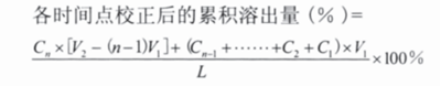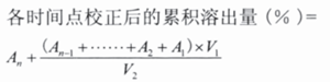 多次取樣時(shí),可采取及時(shí)補(bǔ)充同體積同溫度溶出介質(zhì),亦可采取不補(bǔ)液兩種方式,但必須保證每次抽取體積的固定性。累積校正計(jì)算公式如下: