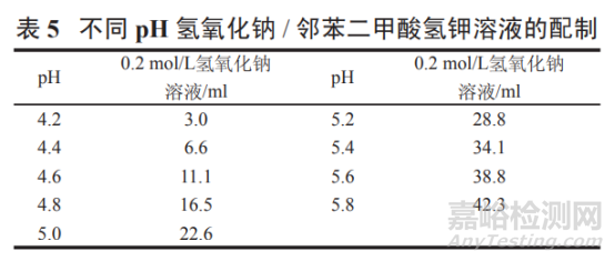 取鄰苯二甲酸氫鉀 2.04 g,按表 5 加入 0.2 mol/L 氫氧化鈉溶液適量,加水溶解并稀釋至 200 ml,搖勻, 即得。