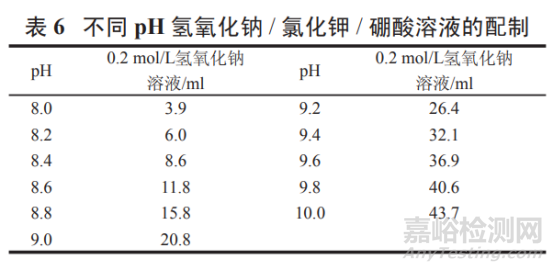 取氯化鉀 0.75 g 與硼酸 0.62 g,按表 6 加入 0.2 mol/L 氫氧化鈉溶液適量,加水溶解并稀釋至 200 ml,搖勻,即得。