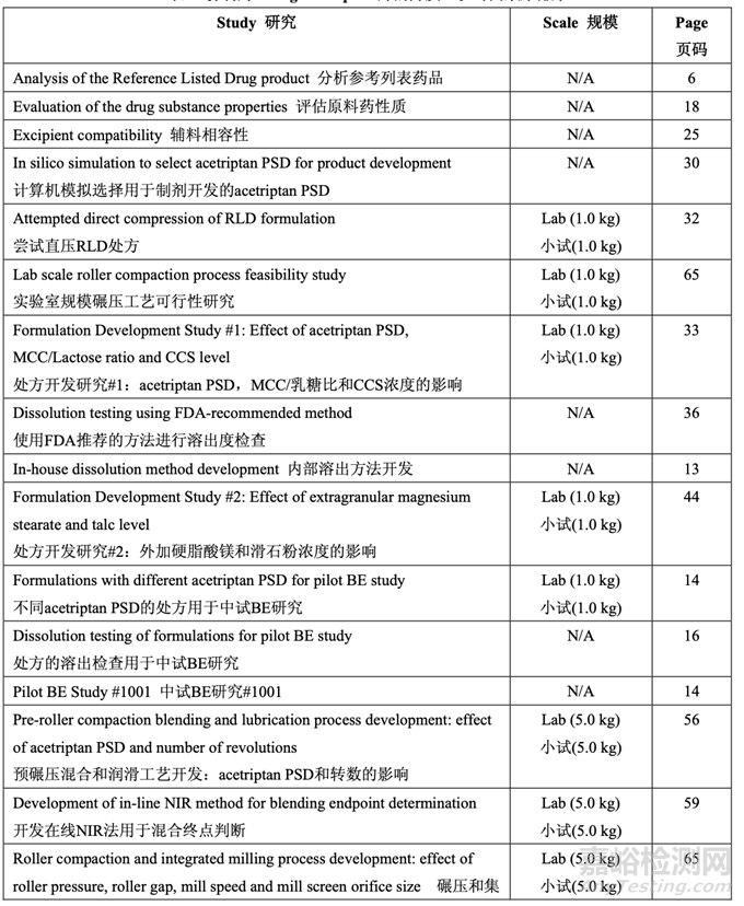 仿制藥 20 mg Acetriptan 片的開發(fā)時(shí)間線列于表 1。