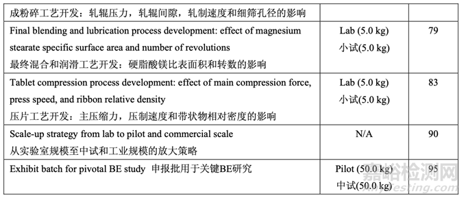 討論了從實(shí)驗(yàn)室規(guī)模(5.0 kg)放大至中試規(guī)模(50.0 kg)的放大原則和計(jì)劃,然后擬定了工業(yè)規(guī) 模(150.0 kg)。在中試規(guī)模下生產(chǎn)了50.0 kg cGMP申報(bào)批并在關(guān)鍵BE研究中顯示生物等效。工業(yè)規(guī)模下,擬定了已確認(rèn)的CPPs操作范圍,在常規(guī)工藝生產(chǎn)中將進(jìn)行限定并持續(xù)驗(yàn)證。