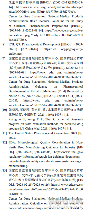 適口性是影響口服溶液劑順應性的重要因素,特別是適用人群包括兒童患者時更應特別關注。適口性通常取決于原輔料的特性和制劑的處方工藝,建議仿制藥的口感與參比制劑保持一致,必要時結合《兒童用藥(化學藥品)藥學開發(fā)指導原則(試行)》[9]等的相關要求,采用客觀、科學的口感評價方法對自制制劑與參比制劑進行對比研究,如采用體外溶出試驗、味覺傳感器(電子舌)等對口味進行定量評估,在對比研究的基礎上制定適宜的控制措施[10]。