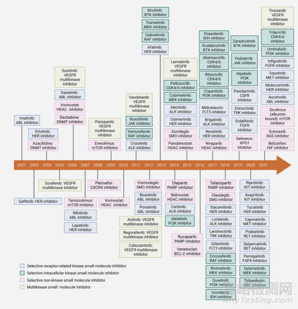 截至2022年8月5-11日,美國FDA批準(zhǔn)用于腫瘤適應(yīng)癥的小分子抑制劑有88種,首次發(fā)表:2022年10月13 資料來源:https://doi.org/10.1002/mco2.181