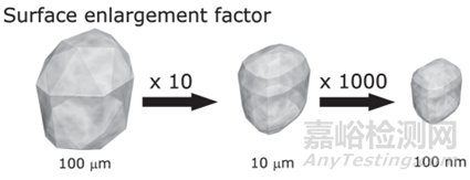 圖3 隨著粒度的減小比表面積的增加(參考文獻(xiàn)3)