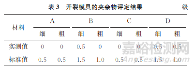 依據(jù)ASTM E45—2018a《鋼中夾雜物含量的測定 標(biāo)準(zhǔn)試驗(yàn)方法》中的方法A對(duì)模具進(jìn)行夾雜物評(píng)定,結(jié)果如表3所示,可見該開裂模具的夾雜物等級(jí)滿足標(biāo)準(zhǔn)要求。