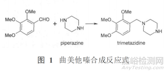 例如:抗心絞痛藥物鹽酸曲美他嗪質(zhì)量標(biāo)準(zhǔn)中哌嗪的檢查正是基于曲美他嗪的合成路線確定。見圖 1。