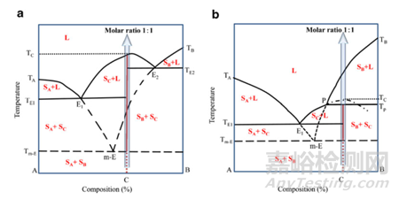 圖4二元混合物普通共熔體系相圖示意圖(來(lái)源文獻(xiàn)4)