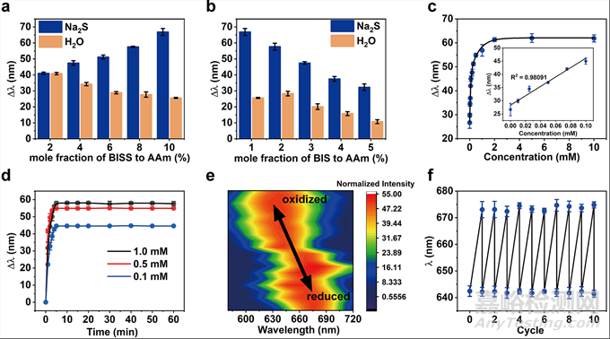 圖3. 結(jié)構(gòu)色水凝膠隨氧化還原反應(yīng)的光子禁帶位移變化。