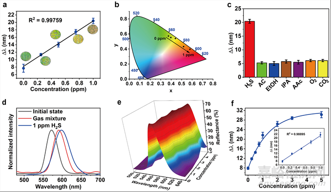 圖4. 結(jié)構(gòu)色水凝膠對VSCs最主要組分硫化氫氣體的檢測。
