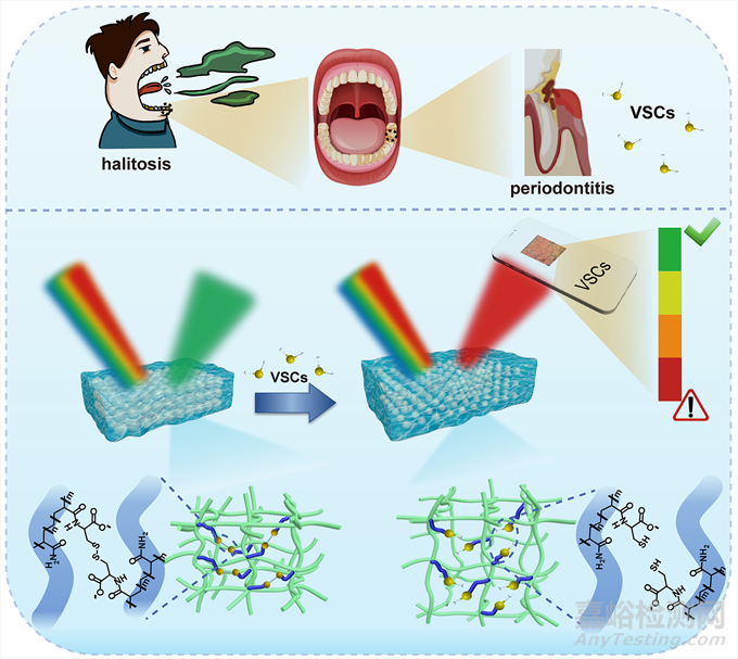 牙周炎是我國成年人失牙的第一大因素,患病率在40%以上。就全球范圍而言,重度牙周炎已成為全球第六大流行性疾病,影響了超過10%的成年人。牙周炎不但影響口腔健康,還與全身健康有關(guān),例如患有重度牙周炎的育齡婦女容易發(fā)生早產(chǎn)。牙周炎主要由口腔致病菌(如牙齦卟啉單胞菌)引起,這些細(xì)菌在代謝過程中會(huì)產(chǎn)生揮發(fā)性硫化物(VSCs,主要成分為硫化氫、甲硫醇等),使牙周炎患者有明顯的口臭癥狀,通常VSCs濃度與牙周炎嚴(yán)重程度正相關(guān);口臭也因影響社交而成為人們?nèi)粘jP(guān)注和口腔科患者的主訴癥狀之一。通過監(jiān)測呼出氣體中VSCs的濃度可以診斷口臭嚴(yán)重程度,并實(shí)現(xiàn)對牙周炎相關(guān)致病菌的檢測和牙周炎的篩查。目前臨床上檢測呼出氣體中的VSCs主要依賴于例如Halimeter的檢測設(shè)備,價(jià)格昂貴、操作復(fù)雜,無法作為日常檢測VSCs的技術(shù)手段。因此,發(fā)展一種低成本、高靈敏的VSCs即時(shí)檢測(point-of-care testing, POCT)技術(shù)能夠極大地便利患者進(jìn)行個(gè)人口腔健康狀況監(jiān)測和管理,對于牙周炎的臨床診斷也起到重要的輔助作用。