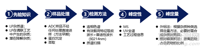 所有ADC共有的一個(gè)重要質(zhì)量屬性是游離(未結(jié)合)藥物的數(shù)量,這會(huì)引起對(duì)毒性和潛在安全問(wèn)題的關(guān)注。未偶聯(lián)藥物或藥物相關(guān)雜質(zhì)的殘留量可能殘留在最終產(chǎn)品中。未偶聯(lián)藥物的相關(guān)形式,如連接藥物種類或其他降解產(chǎn)物,也可以在偶聯(lián)物存儲(chǔ)期間釋放。因此,開(kāi)發(fā)和應(yīng)用合適的方法來(lái)檢測(cè)、表征和量化游離藥物是至關(guān)重要的。常規(guī)的游離藥物監(jiān)控方法的開(kāi)發(fā)思路如下。