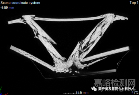 在這個(gè)特殊的樣品中,一個(gè)小的復(fù)合材料塊、x射線和成像設(shè)置進(jìn)行了優(yōu)化,以增強(qiáng)碳纖維和環(huán)氧樹脂之間的對(duì)比度。這使我們能夠虛擬地分割和去除樹脂材料,以暴露纖維結(jié)構(gòu)。這些數(shù)據(jù)在評(píng)估材料和不同制造工藝的結(jié)構(gòu)性能方面非常有價(jià)值?,F(xiàn)在甚至有商業(yè)上可用的軟件工具可以對(duì)整個(gè)結(jié)構(gòu)的纖維一致性和取向進(jìn)行數(shù)值評(píng)估。
