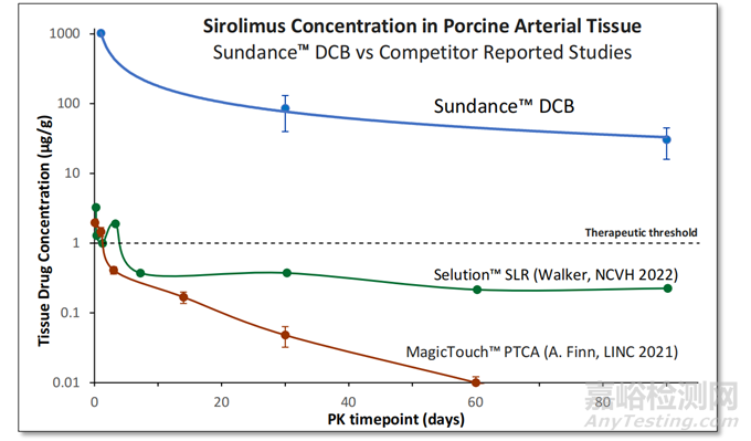 Sundance載藥涂層由西羅莫司和專有賦形劑組成,其中西羅莫司采用了Surmodics專有微晶技術(shù)。專有的微晶技術(shù)不僅提高純度和穩(wěn)定性,以及藥物涂層均勻性和藥物劑量密度。